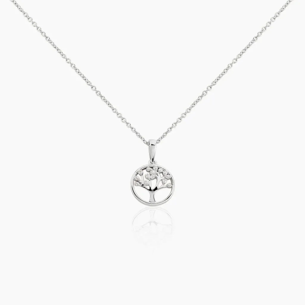 Collier Argent Blanc 925/1000 Arbre De Vie Oxyde De Zirconium Serti Griffes Maille Forcat 42+3cm