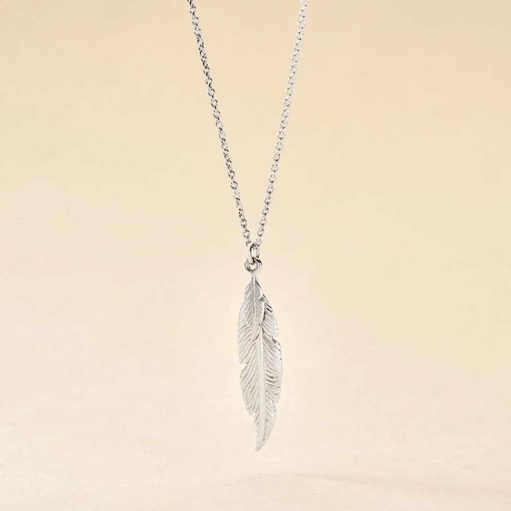 Collier Argent Blanc 925/1000 Double Plumes Maille Forcat 45cm