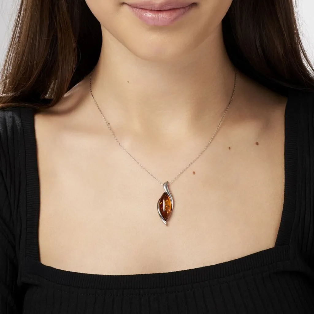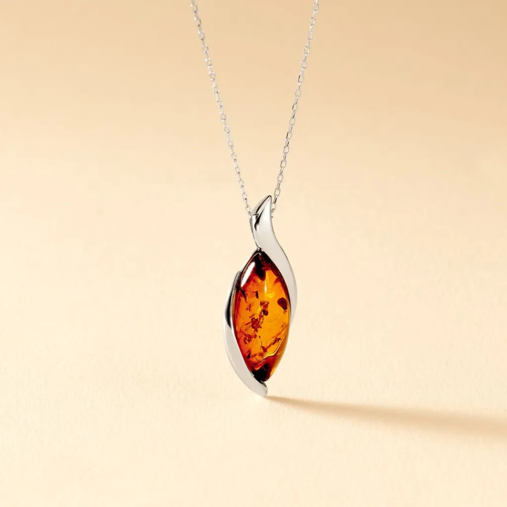 Collier Argent Blanc 925/1000 Ambre Cognac 44cm