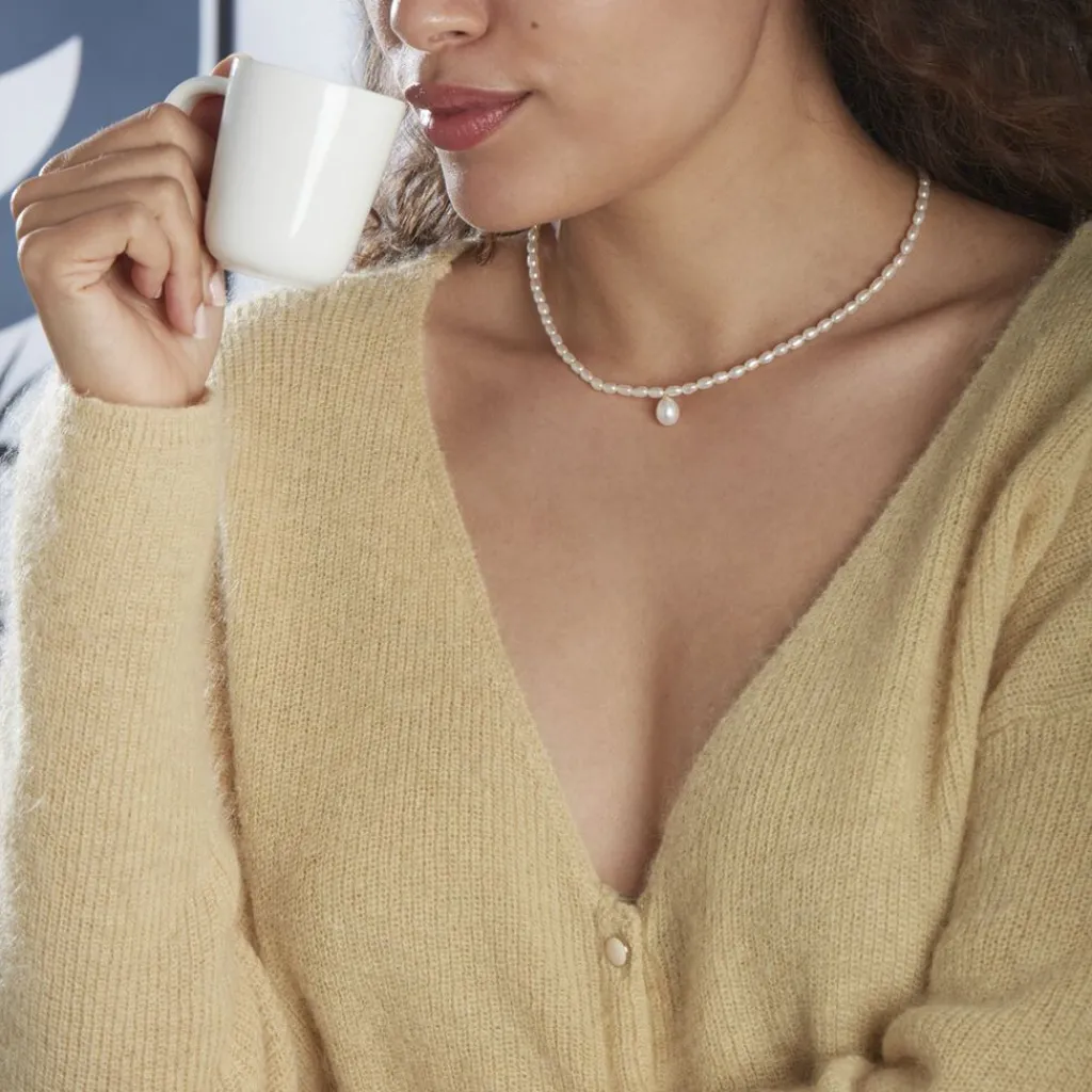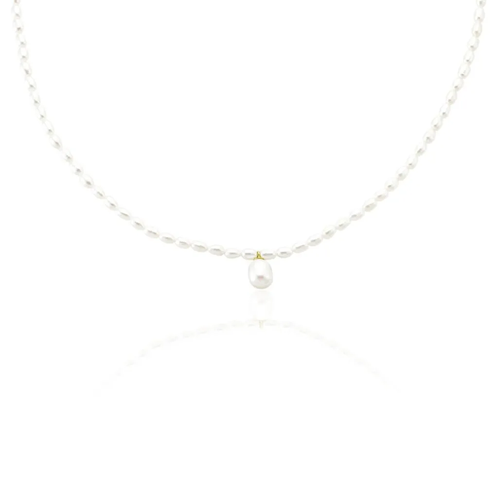 Collier Or Jaune 375/1000 Perles De Culture 3.5/4mm Et 7.5/8mm Grain De Riz Et Poire 45cm