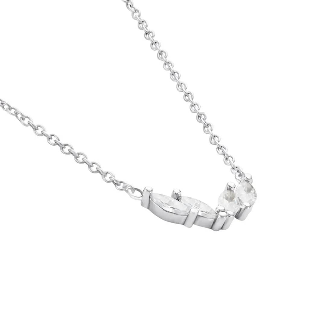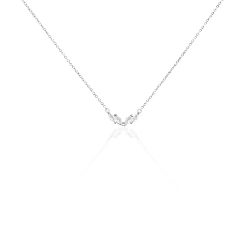 Collier Argent 925/1000 winter Sweetness Oxyde De Zirconium Taille Navette Serti Griffes Maille Forcat 45cm