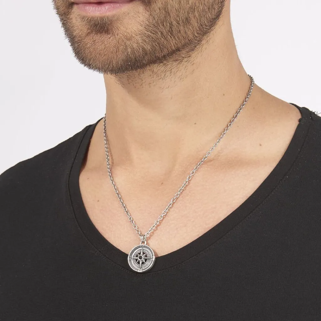 Collier Acier Inoxydable Blanc Gouvernail 50cm