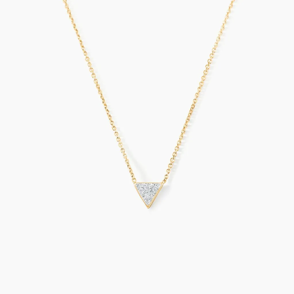 Collier Or Jaune 375/1000 Triangle Glitter Argente Maille Jaseron 40+2cm