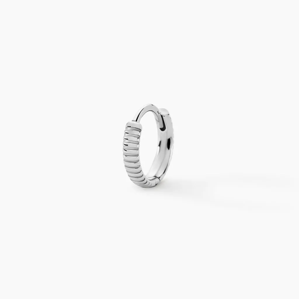 Créole Unitaire Argent Blanc 925/1000 Effet Strié Diamètre 9mm