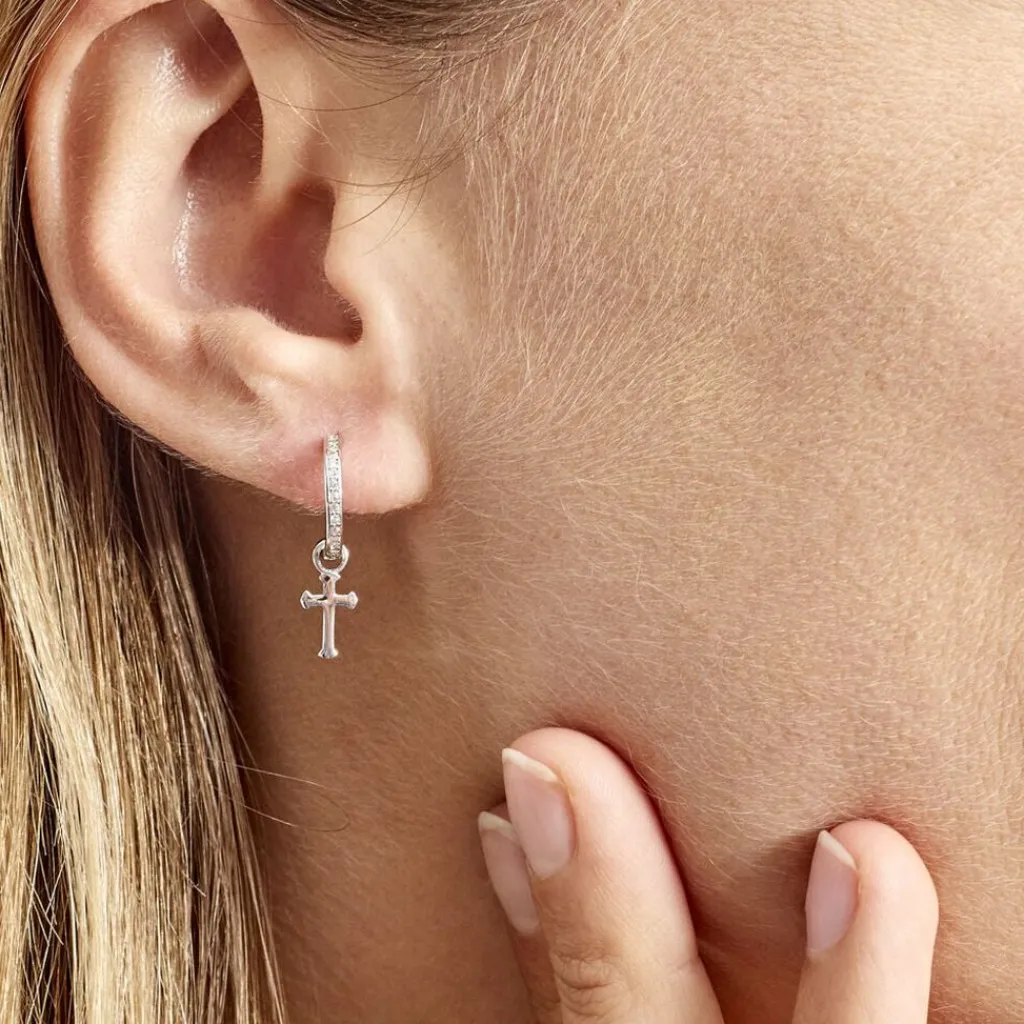 Creole Unitaire Argent Blanc 925/1000 Croix Pavage Oxydes De Zirconium