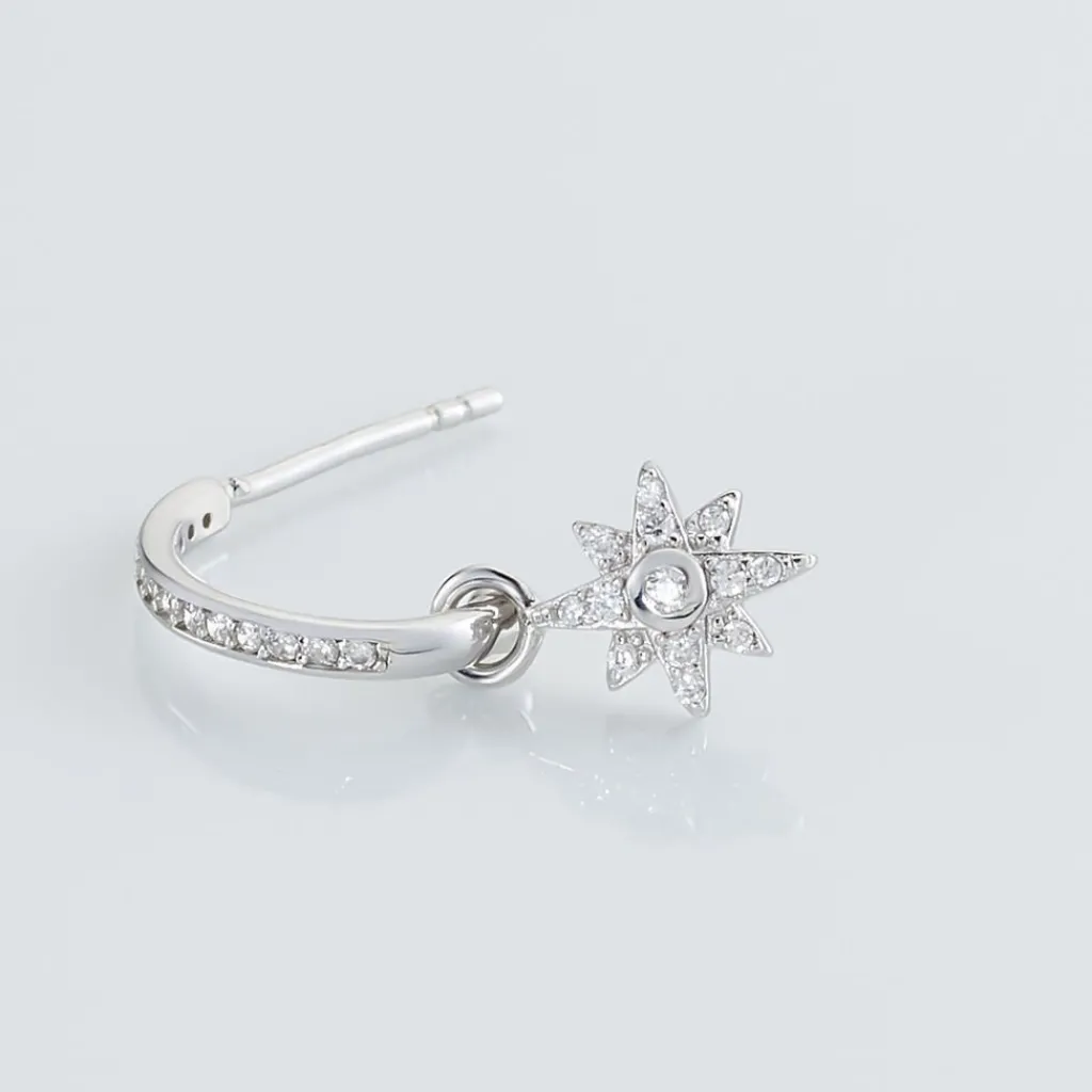 Creole Unitaire Argent Blanc 925/1000 Flocon De Neige Pavage Oxydes De Zirconium