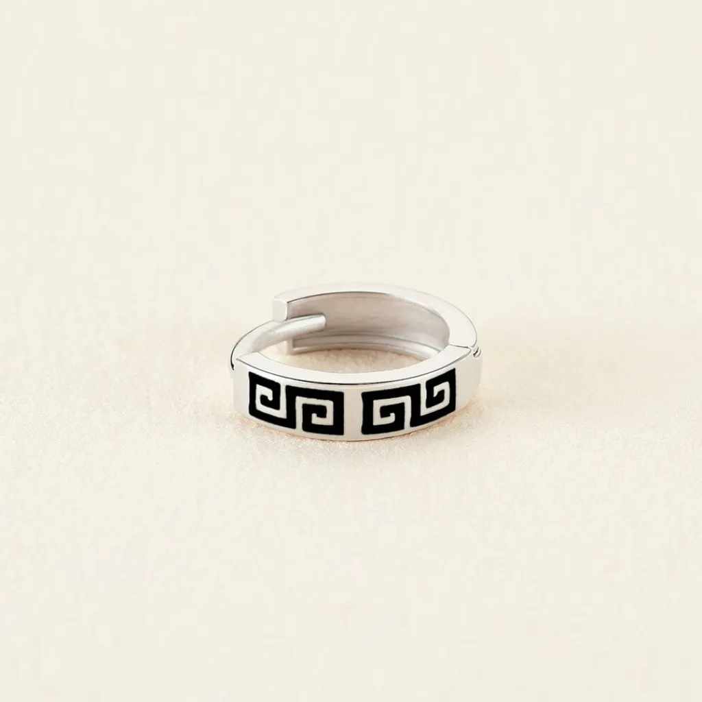 Creole Unitaire Or Blanc 375/1000 Fil Carre Motifs Grec Email Noir Diametre 8mm