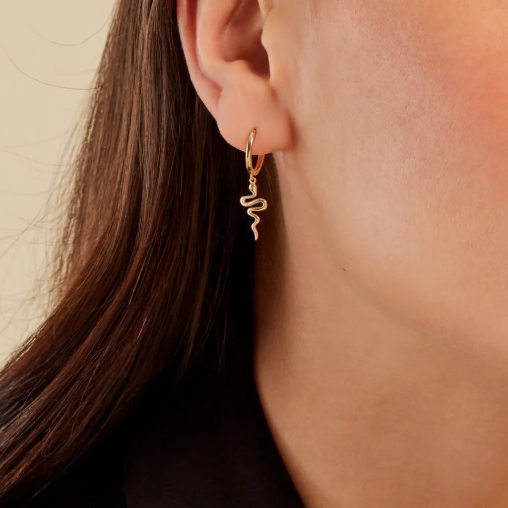 Creole Unitaire Or Jaune 375/1000 Fil Rond Pampille Serpent Diametre 10mm
