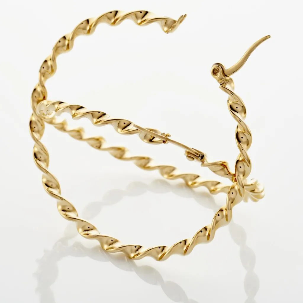 Créoles Acier Inoxydable Jaune Torsadees Largeur 3mm Diametre 40mm