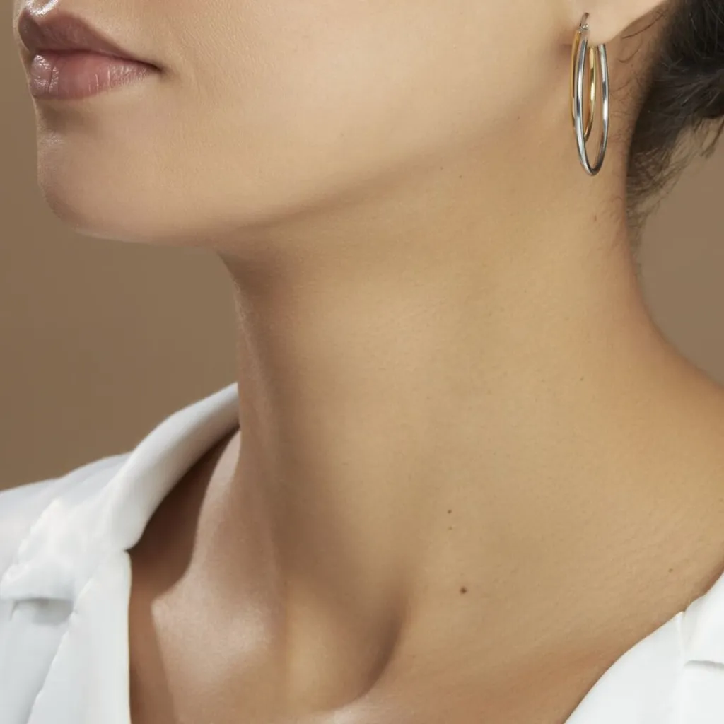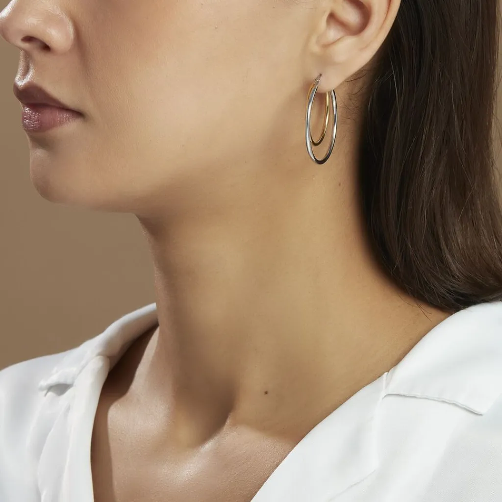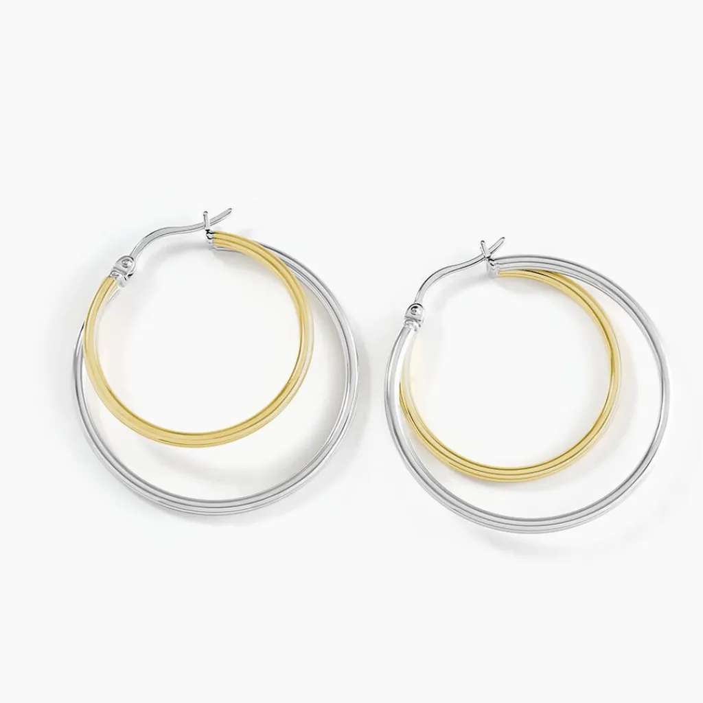 Créoles Acier Inoxydable Bicolore Double Rangs Fil 2mm Diametre 25 Et 33mm