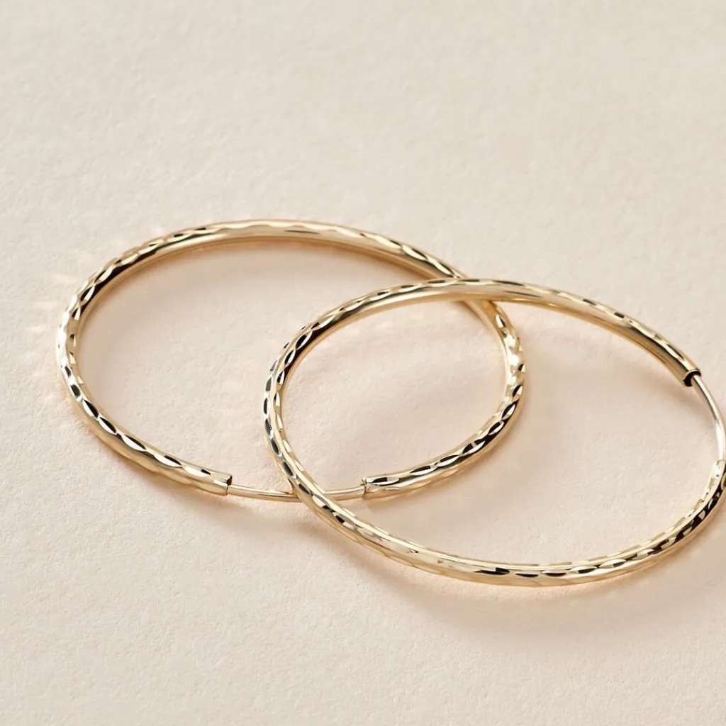 Créoles Or Jaune 375/1000 Flexibles Effet Diamanté Largeur 1.3mm Diametre 25mm