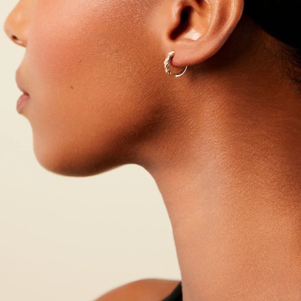 Creoles Or Jaune 375/1000 Torsade Pavage Diamant Diametre 11Mm