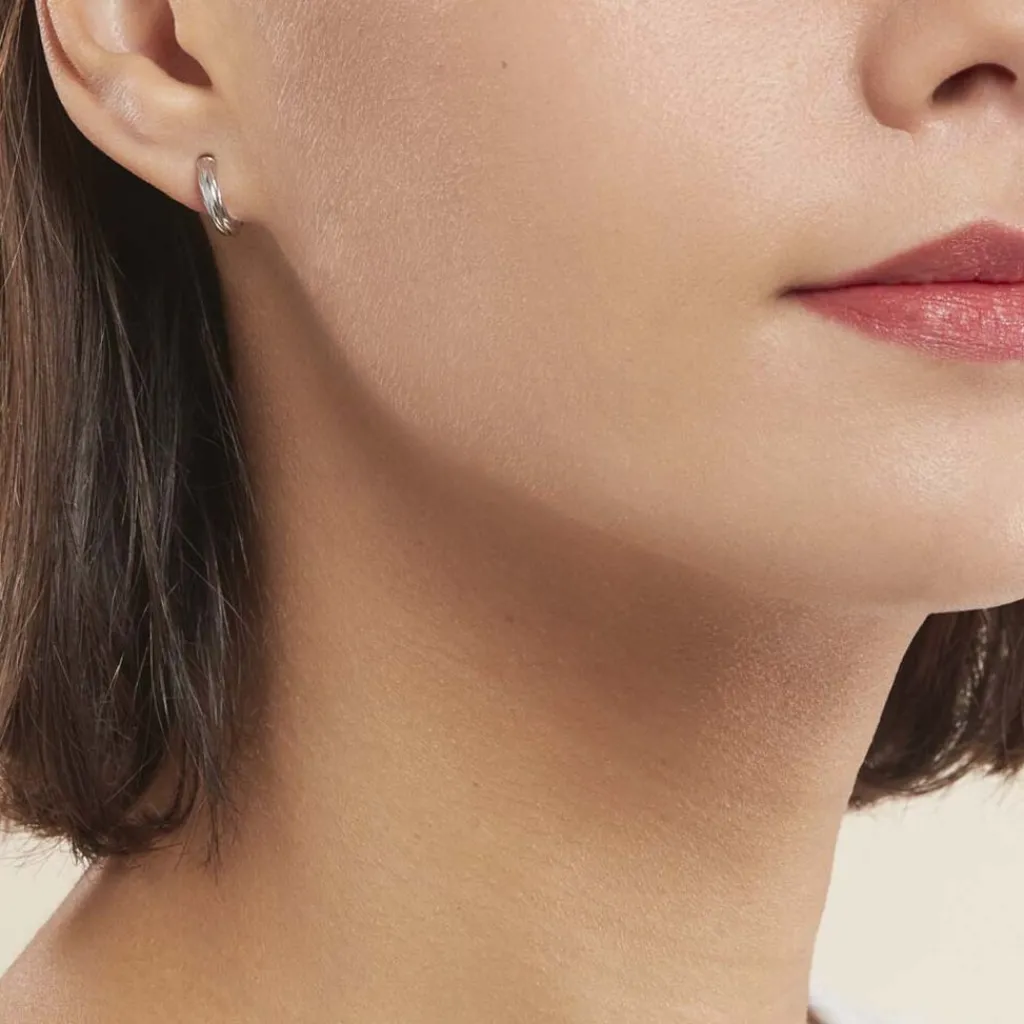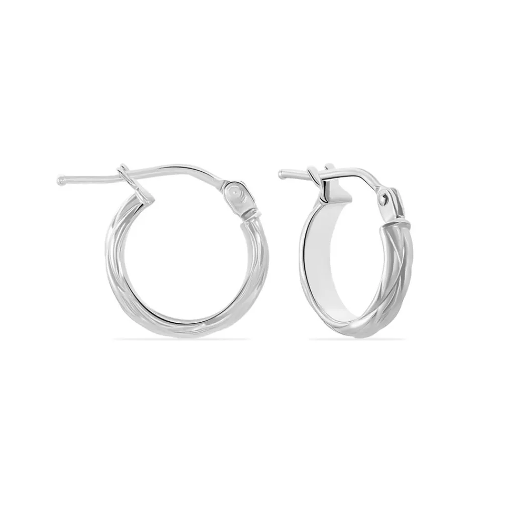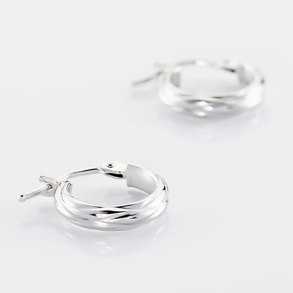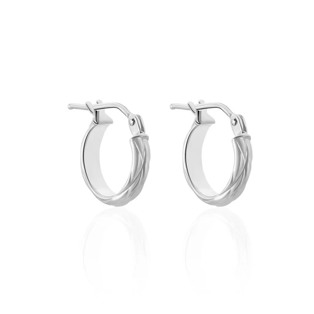 Créoles Or Blanc 375/1000 Fil Demi Jonc Effet Diamanté Largeur 3mm Diamètre 8mm