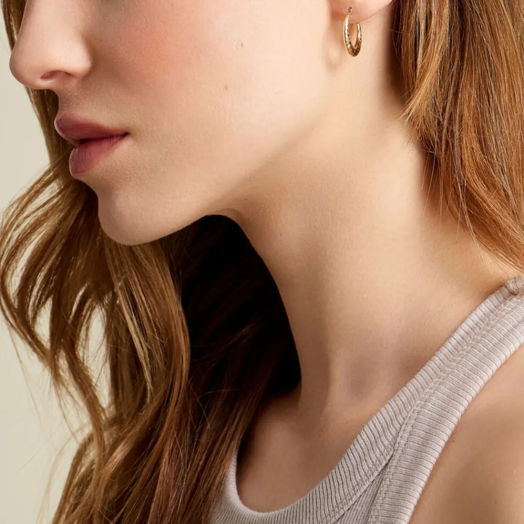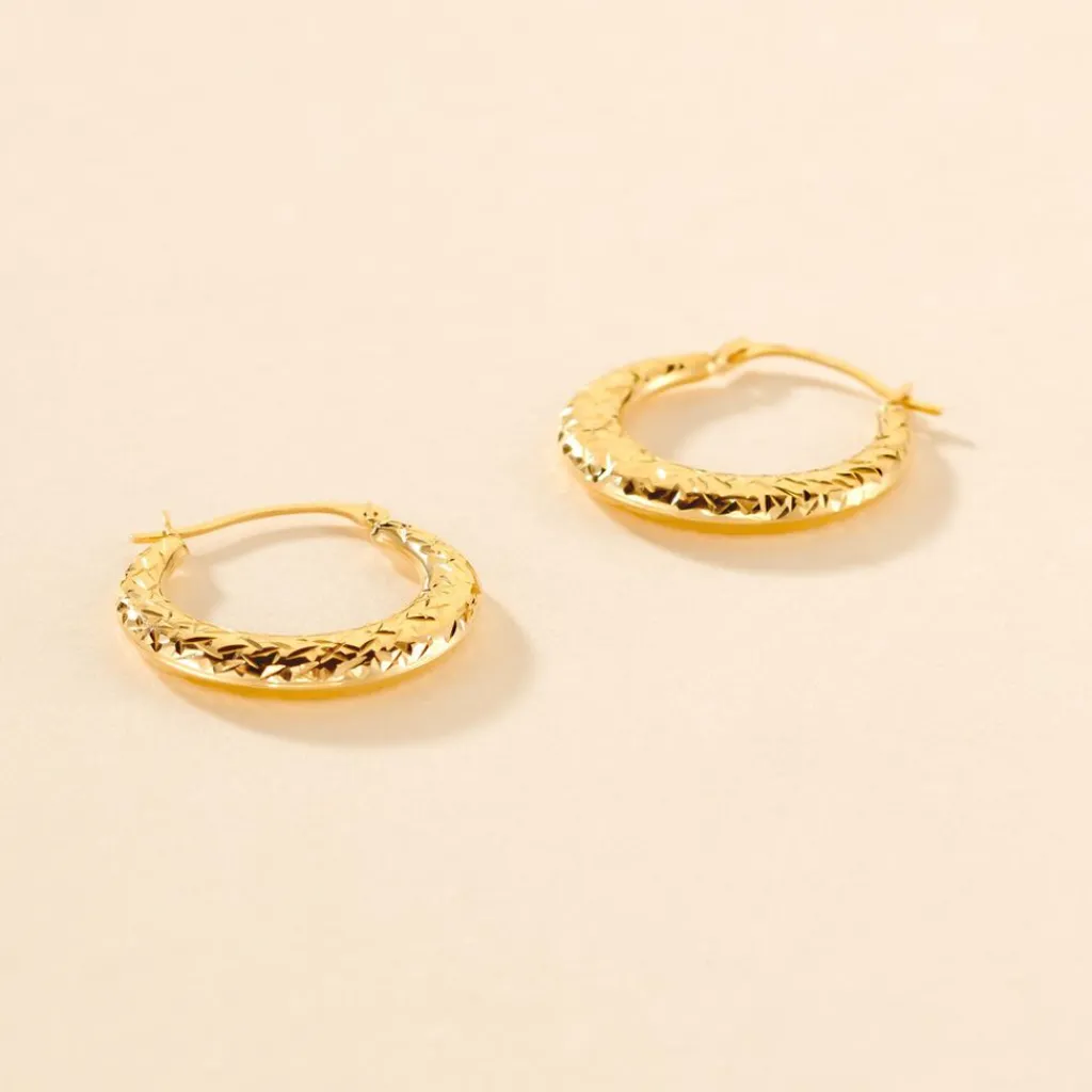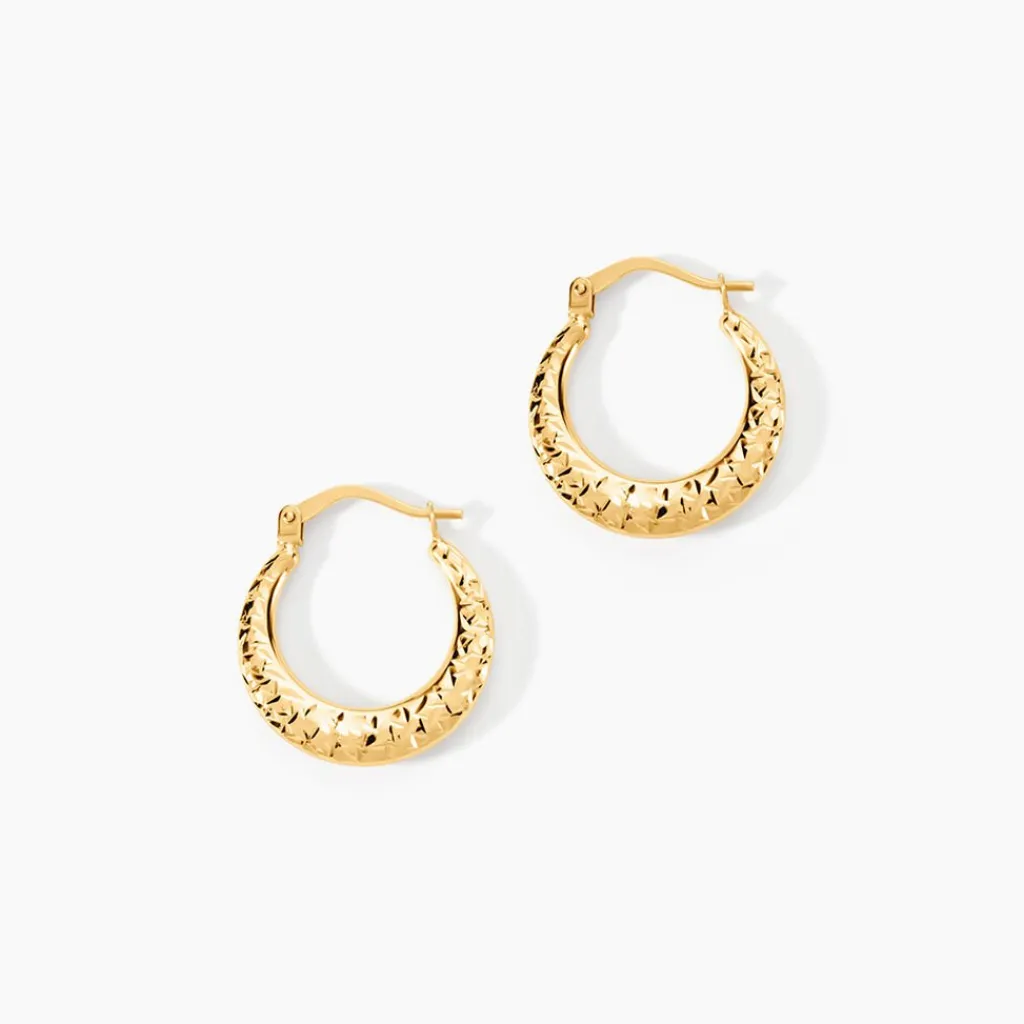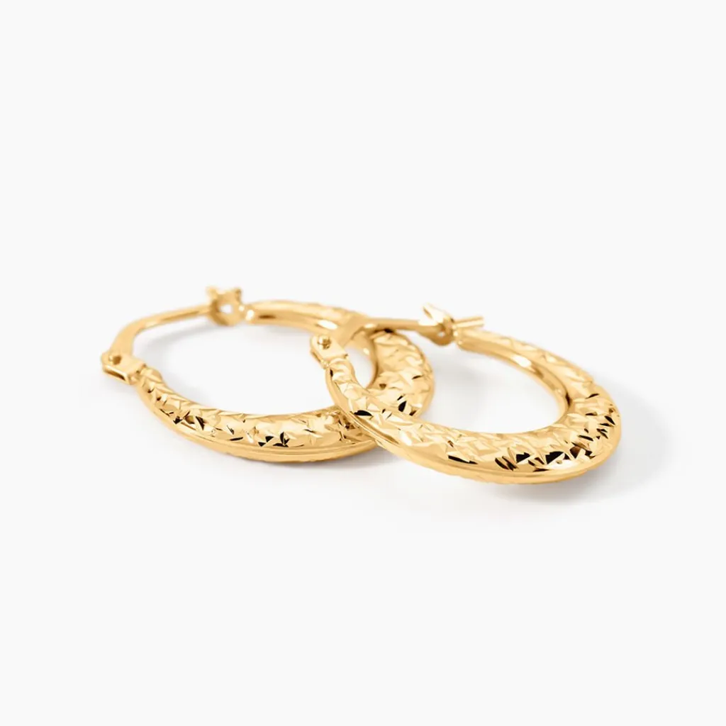 Créoles Or Jaune 375/1000 Rondes Fil Bombé Effet Diamanté Diamètre 18mm