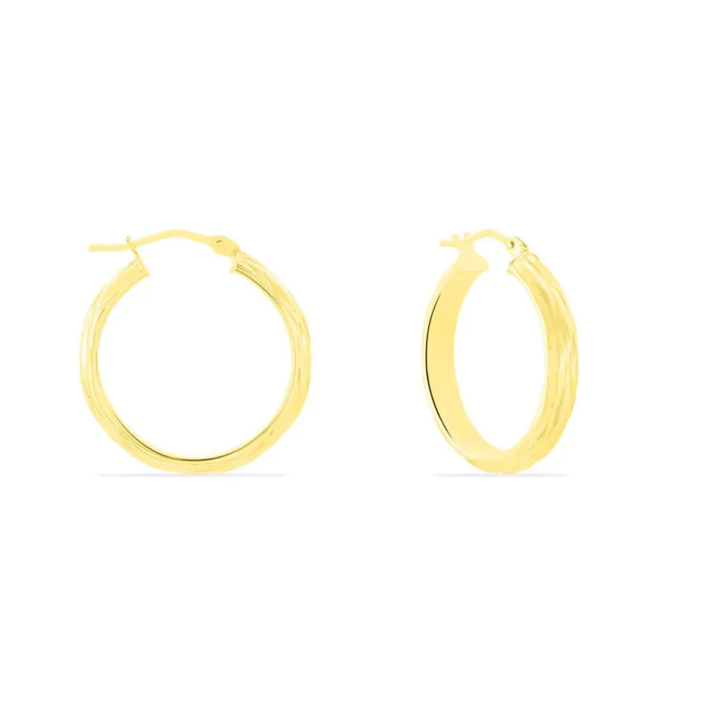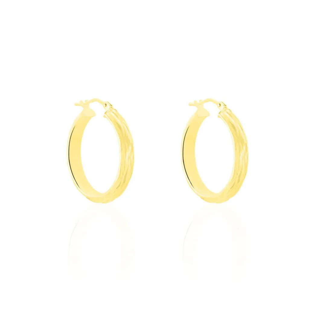 Créoles Or Jaune 375/1000 Fil Demi Jonc Effet Diamanté Largeur 4mm Diamètre 20mm
