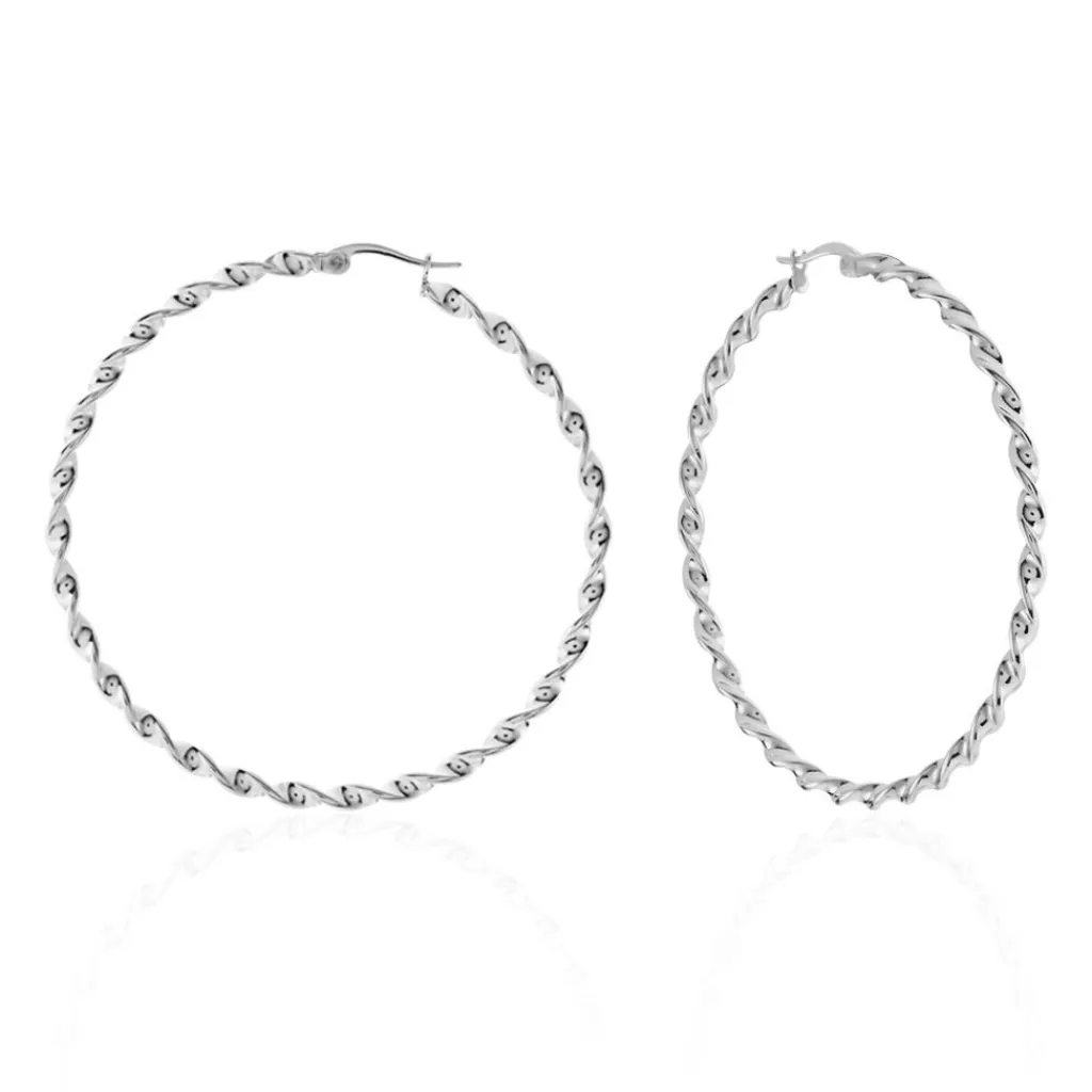 Creoles Acier Blanc Torsadees Largeur 3mm Diametre 50mm