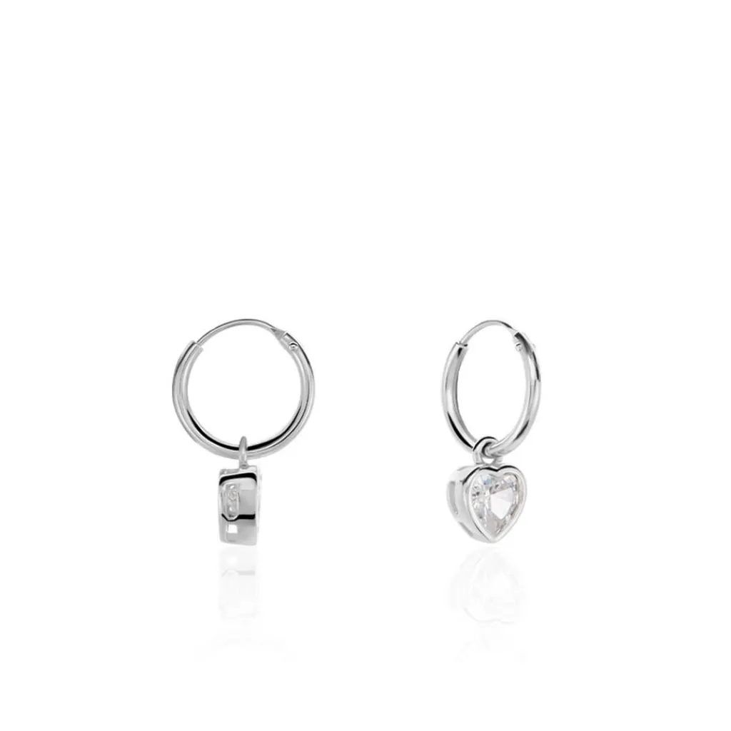 Creoles Argent Blanc 925/1000 Pampilles C艙urs Serti Clos Oxydes De Zirconium Diametre 13mm