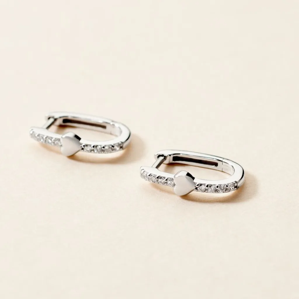 Creoles Argent Blanc 925/1000 Motifs C艙urs Et Pavage Oxydes De Zirconium Diametre 10mm