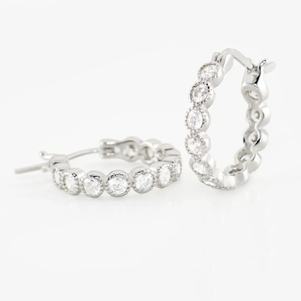 Créoles Argent Blanc 925/1000 Effet Perlé Oxydes De Zirconium Serti Clos Diamètre 18mm