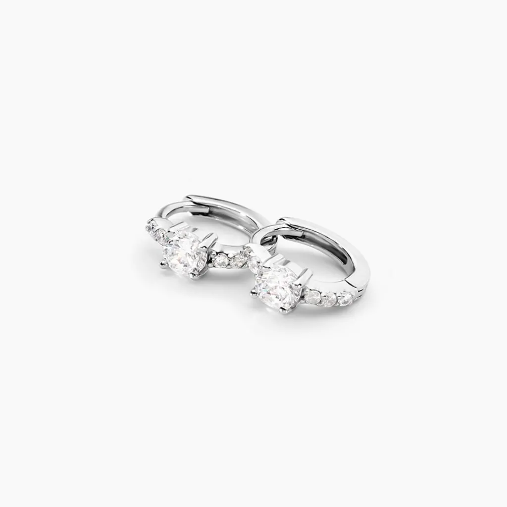 Creoles Argent Blanc 925/1000 Pavage Oxydes De Zirconium Avec Oxydes De Zirconium Serti Griffes Centrales