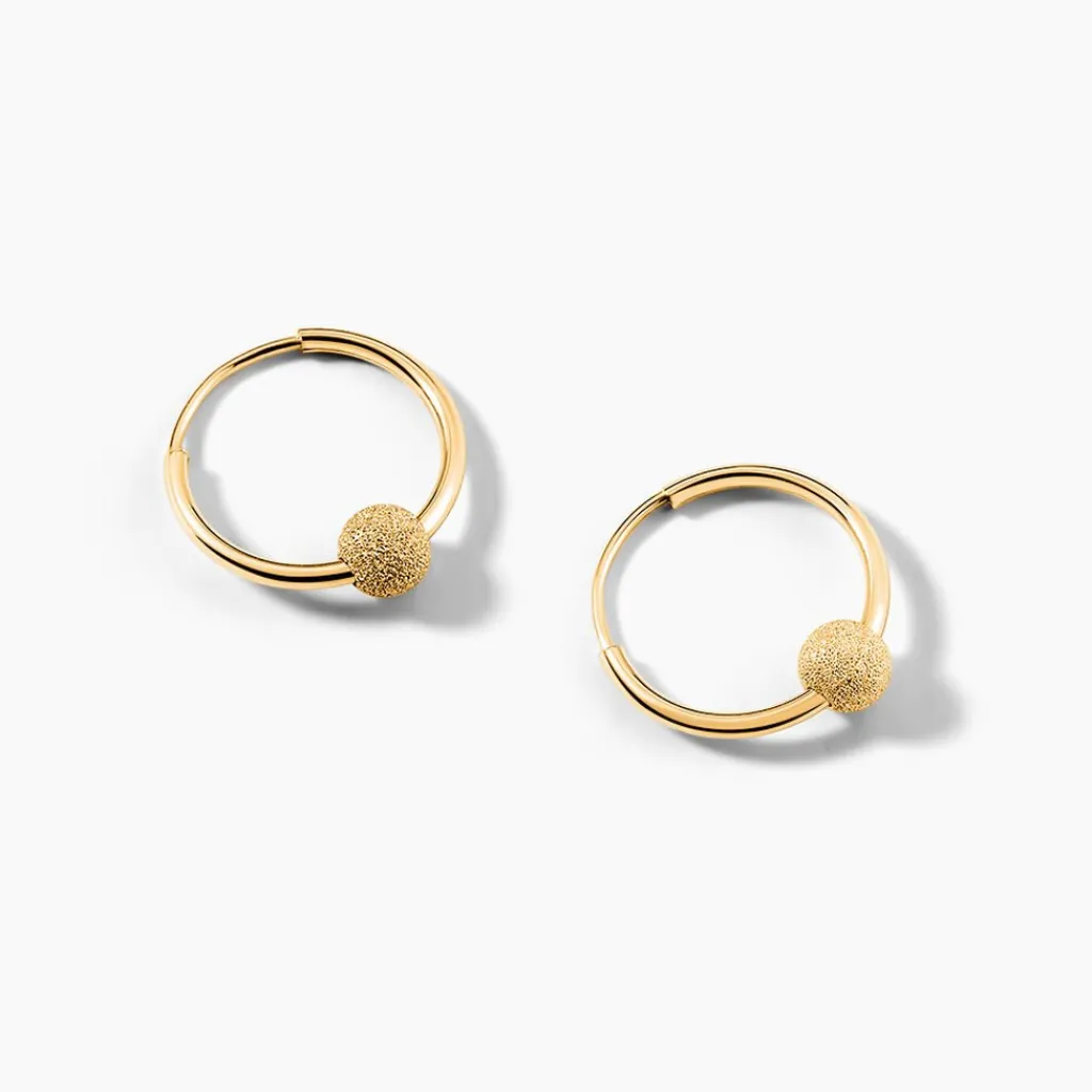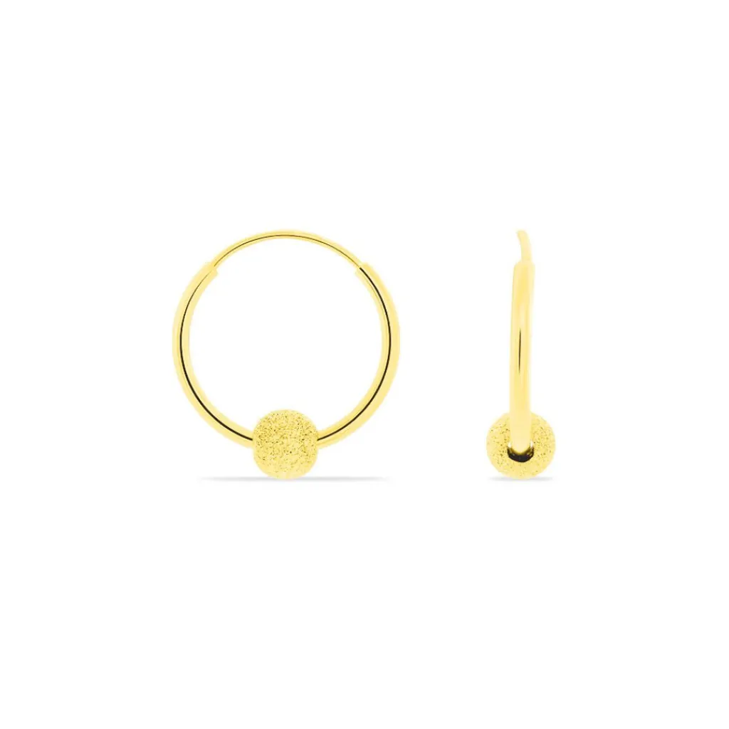 Créoles Or Jaune 375/1000 Boules Effet Sablé Fil Flexible Lisse Largeur 1.2mm Diamètre 13mm