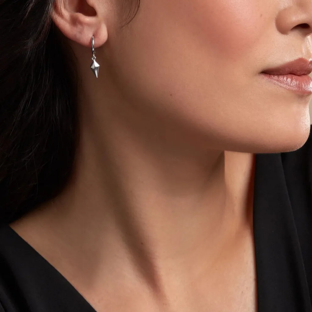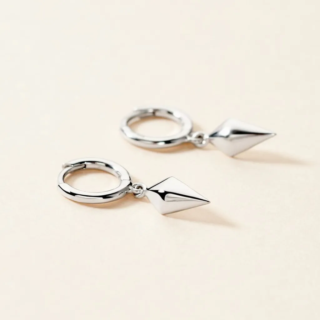 Creoles Argent Blanc 925/1000 Pampilles Losanges Diamère 11mm