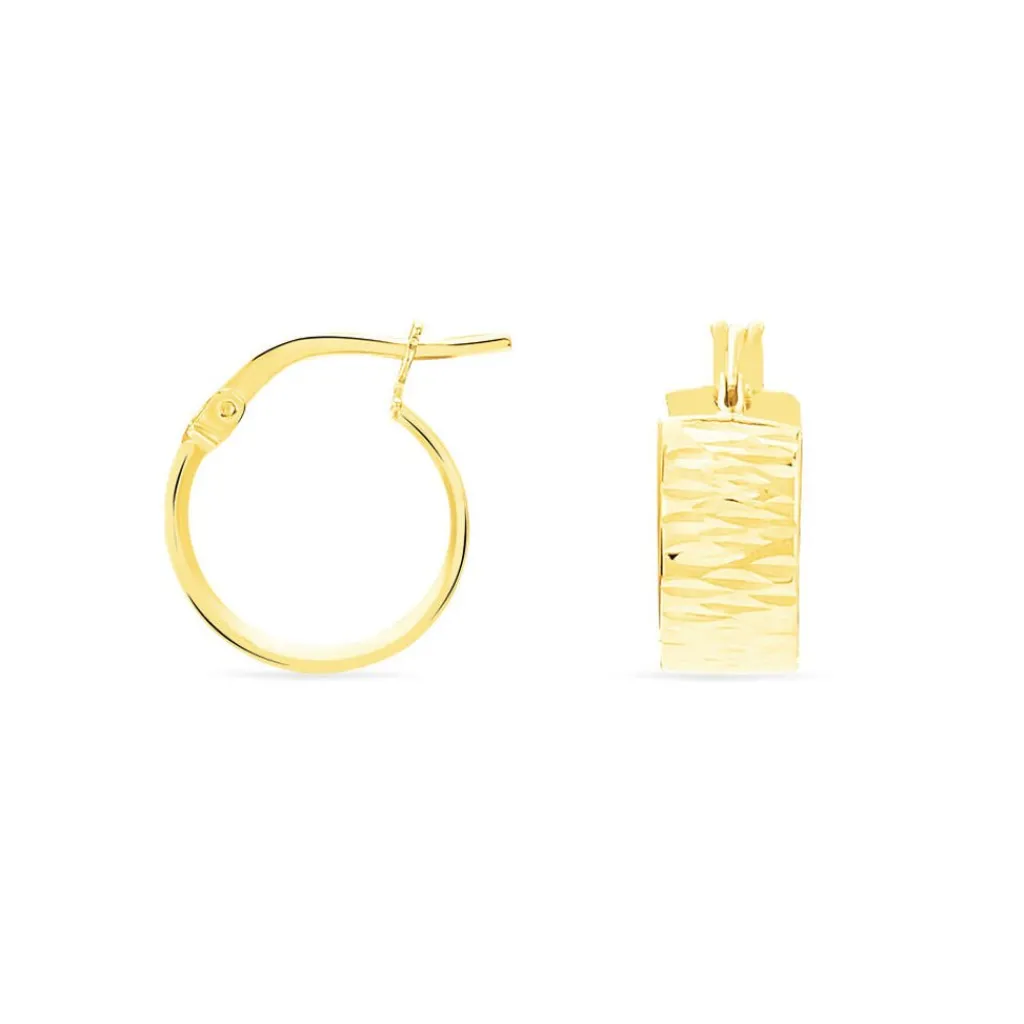 Créoles Or Jaune 375/1000 Fil Plat Effet Diamanté Largeur 4mm Diamètre 13mm