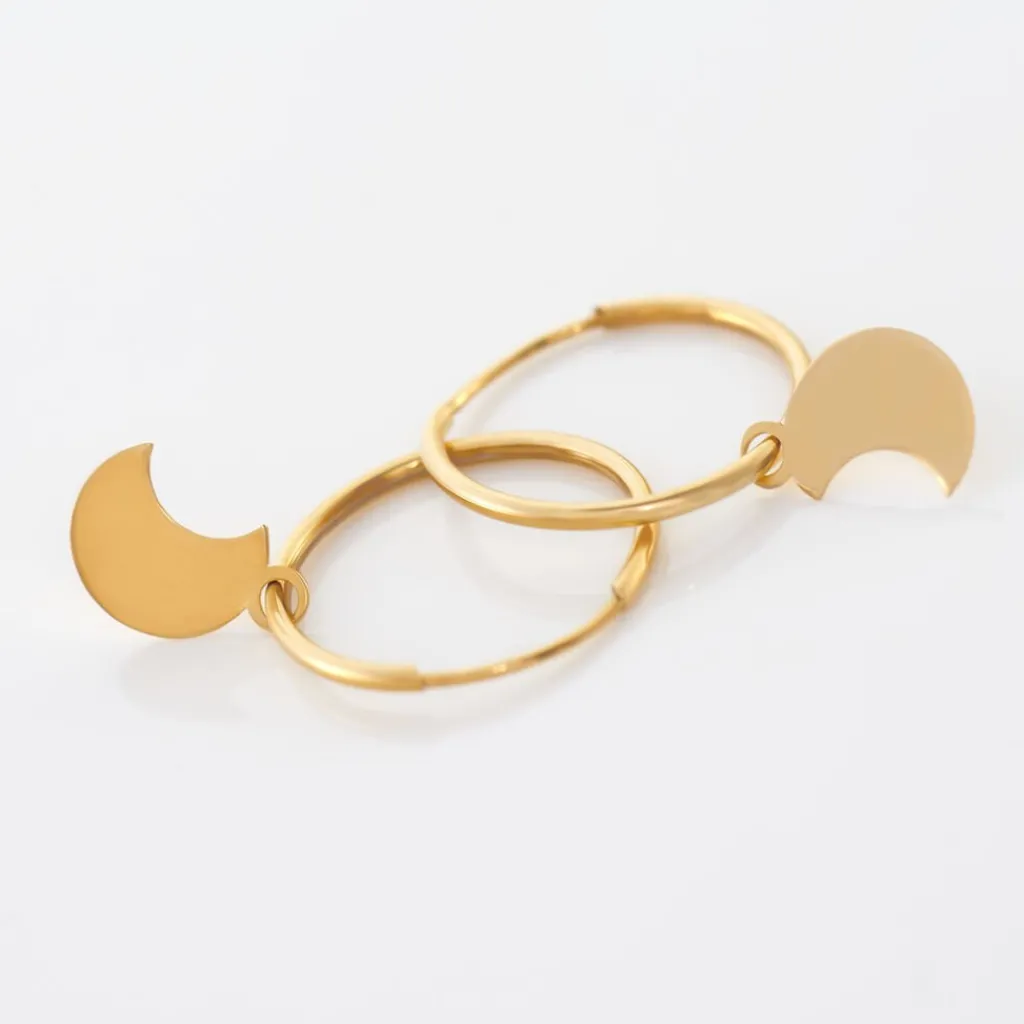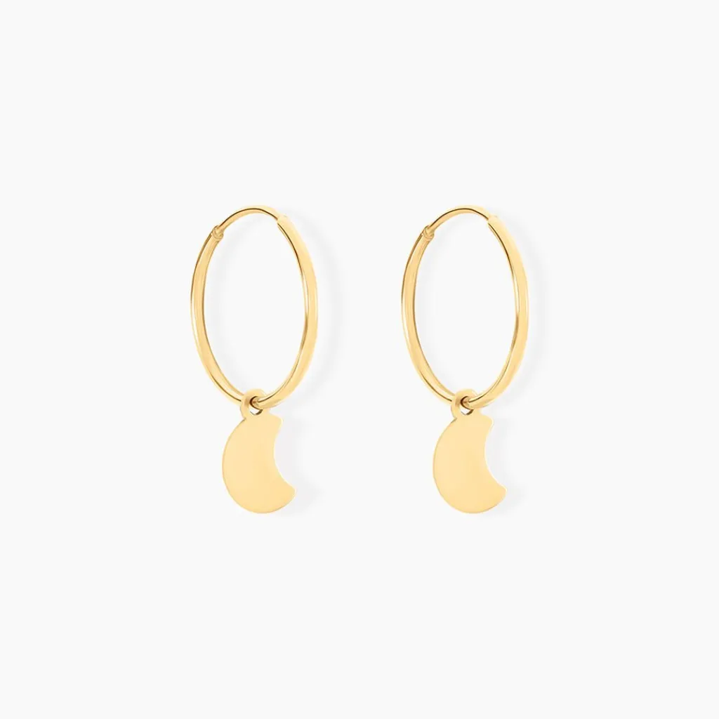 Créoles Or Jaune 375/1000 Pampilles Lunes Fil Flexible Lisse Largeur 0.8mm Diamètre 11mm