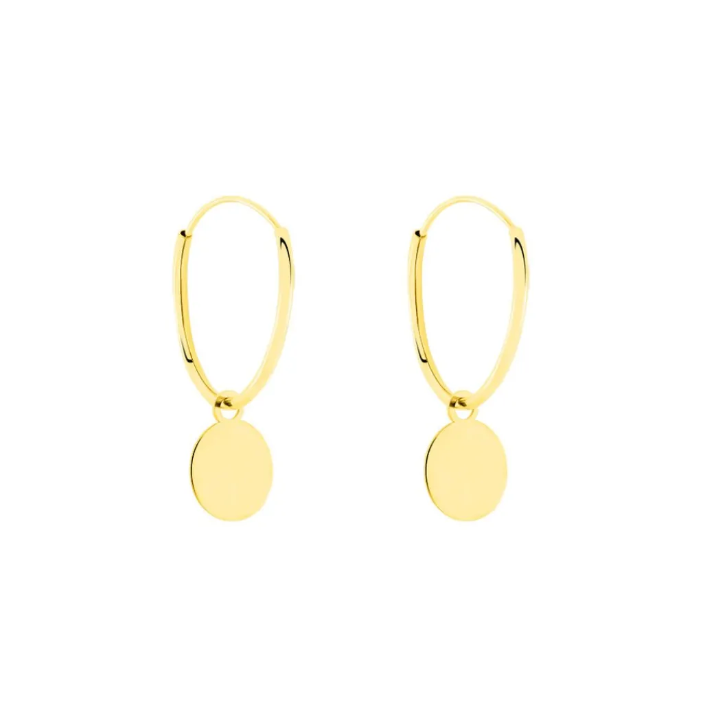 Créoles Or Jaune 375/1000 Pampilles Rondes Fil Flexible Lisse Largeur 0.8mm Diamètre 11mm