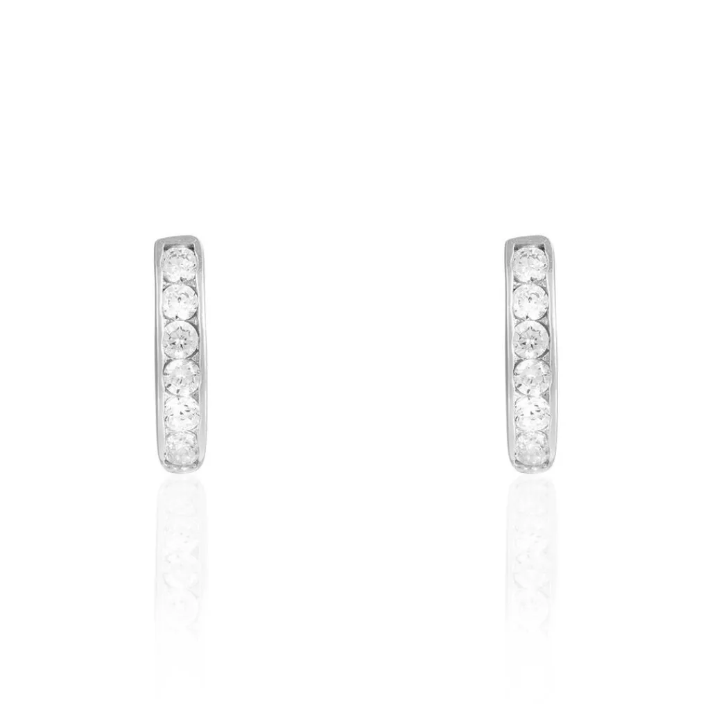 Boucles D’oreilles Demi Creole Argent Blanc 925/1000 Avec Oxydes De Zirconium