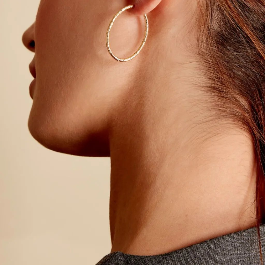 Creoles Or Jaune 375/1000 Ovales Fil Rond Effet Diamante Largeur 2mm Diametre 35.52mmx24.42mm