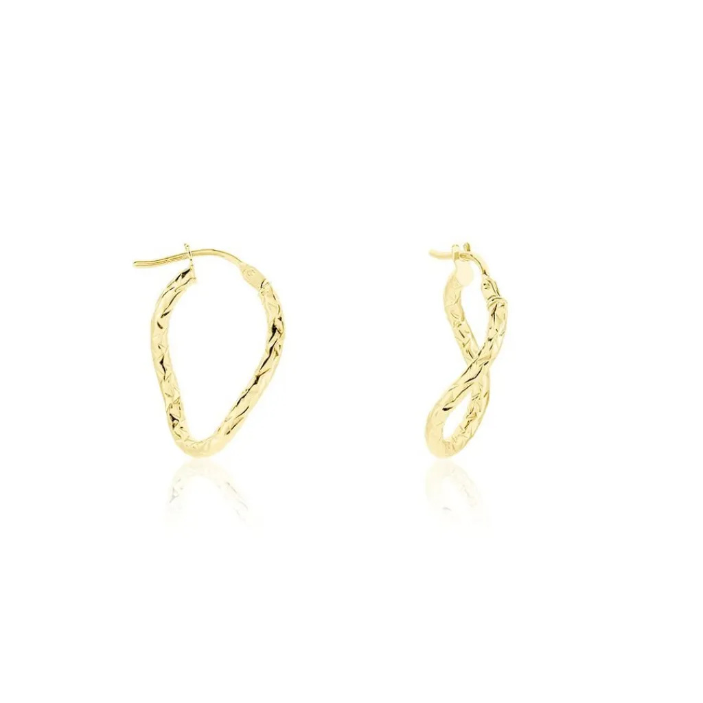 Creoles Or Jaune 375/1000 Ovales Fil Vrille Effet Diamante Largeur 2mm Diametre 22.2mmx15.44mm