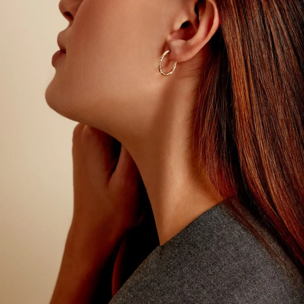 Creoles Or Jaune 375/1000 Ovales Fil Rond Effet Diamante Largeur 2mm Diametre 18.1mmx14.6mm