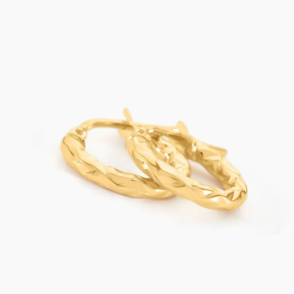 Créoles Or Jaune 375/1000 Fil Rond Diamante Epaisseur 2mm Diamètre 8mm
