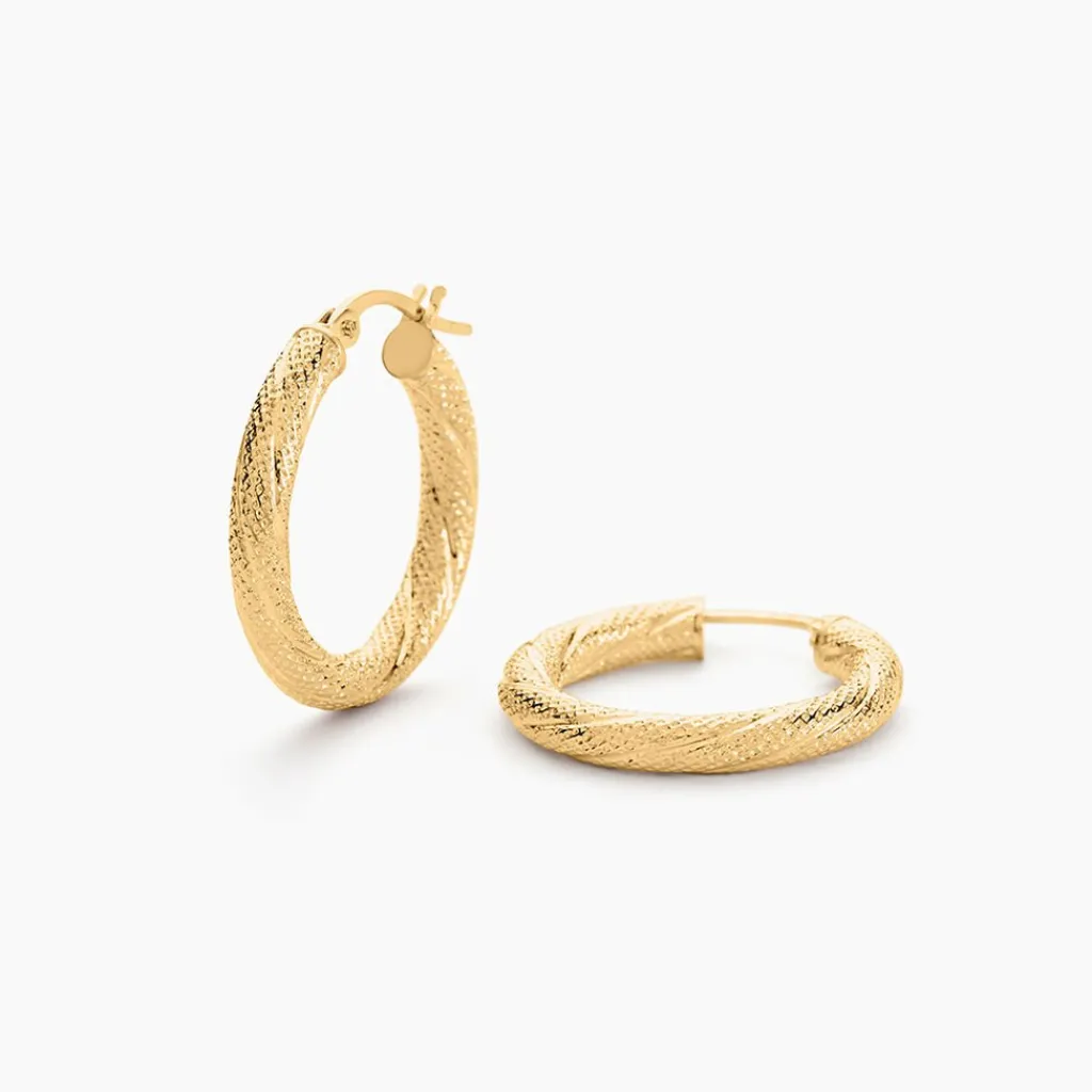 Creoles Or Jaune 375/1000 Fil Rond Torsadé Effet Piqueté Diamètre 15mm