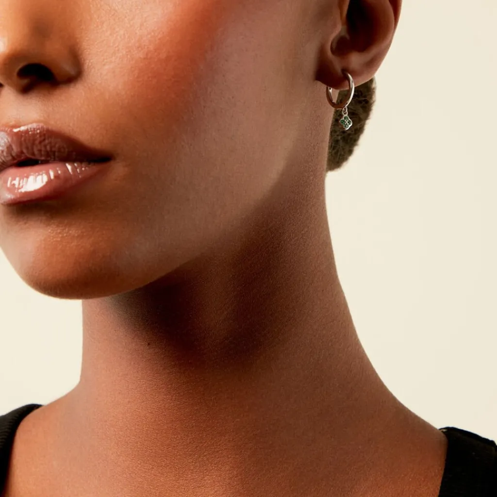 Créoles Argent Blanc 925/1000 Pampilles Fleurs Pierres Vertes Diametre 10Mm