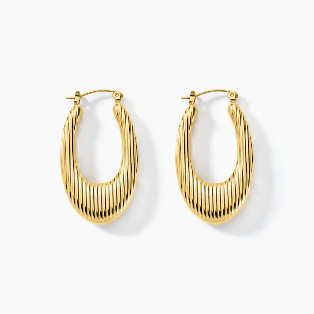 Créoles Acier Inoxydable Jaune Ovales Striées Diamètre 14.57mm