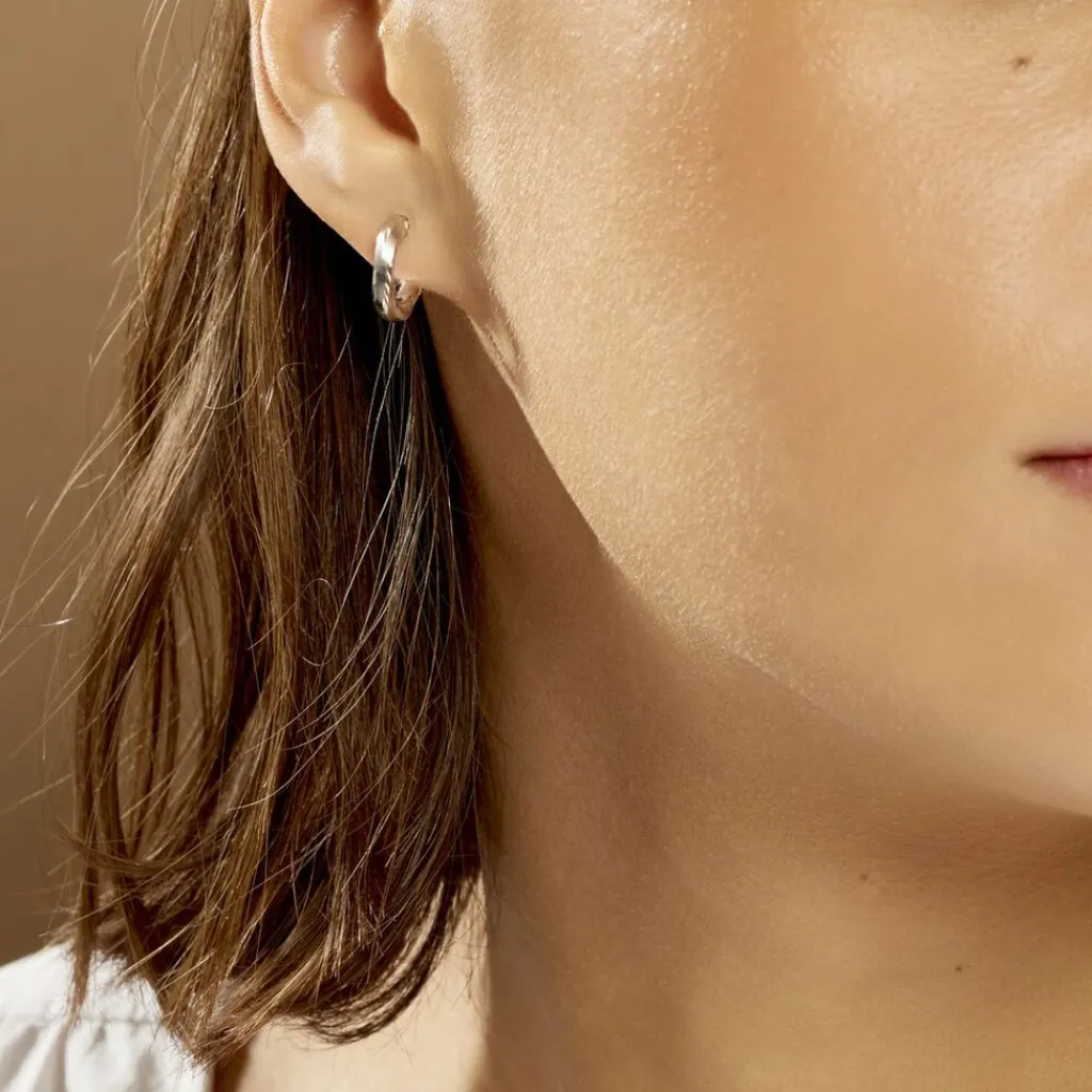 Créoles Argent Blanc 925/1000 Carrees Helicoidales Largeur 2.67mm Diametre 8mm