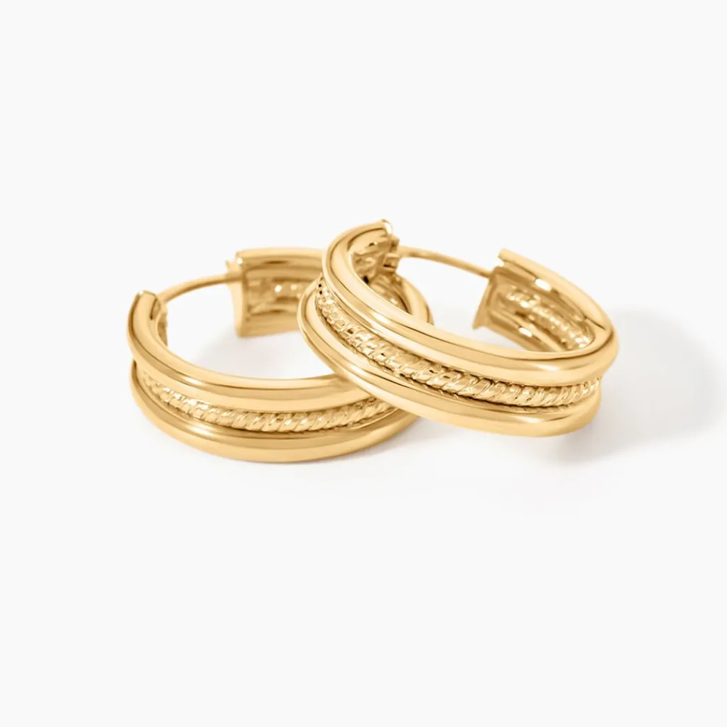 Creoles Or Jaune 750/1000 Fil Rond Diametre 15Mm