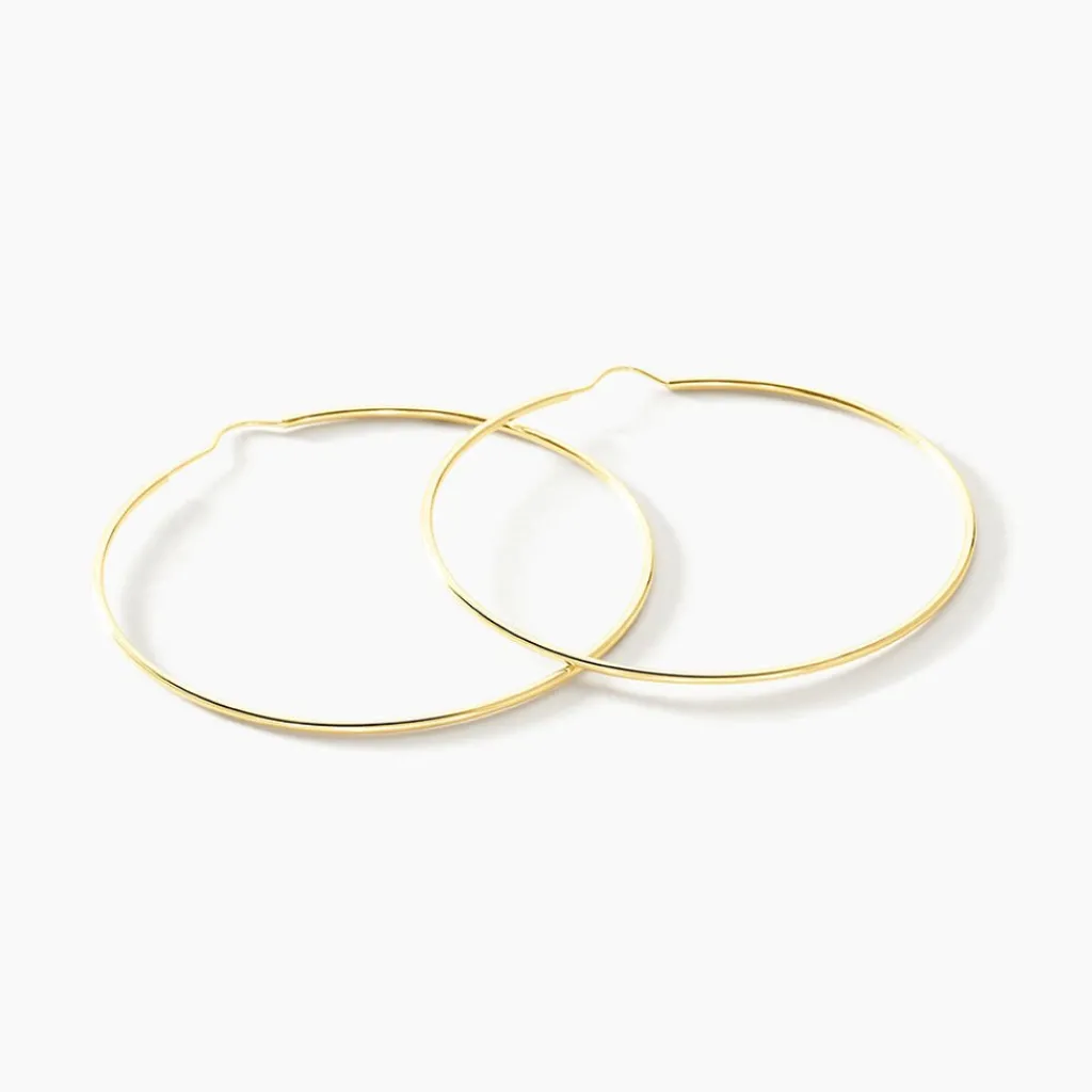 Créoles Or Jaune 375/1000 Fil Flexible Lisse Largeur 1.2mm Diamètre 50mm
