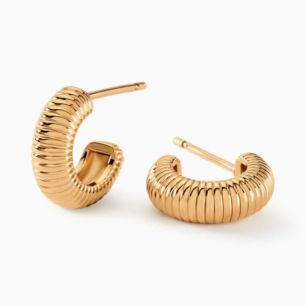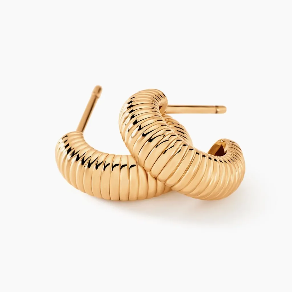 Créoles Plaqué Or Jaune Ouvertes Striées Diamètre 15mm