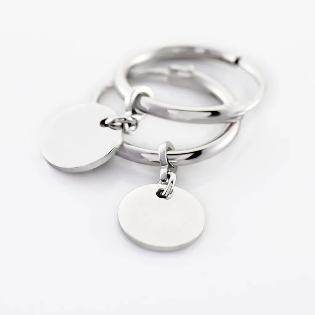 Creoles Argent Blanc 925/1000 Pampilles Motifs Pastilles Diametre 12mm