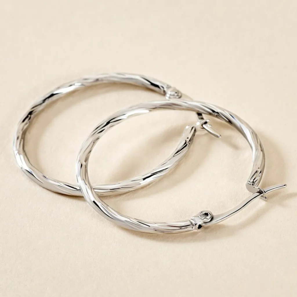 Créoles Acier Blanc Effet Strié Diamètre 30mm