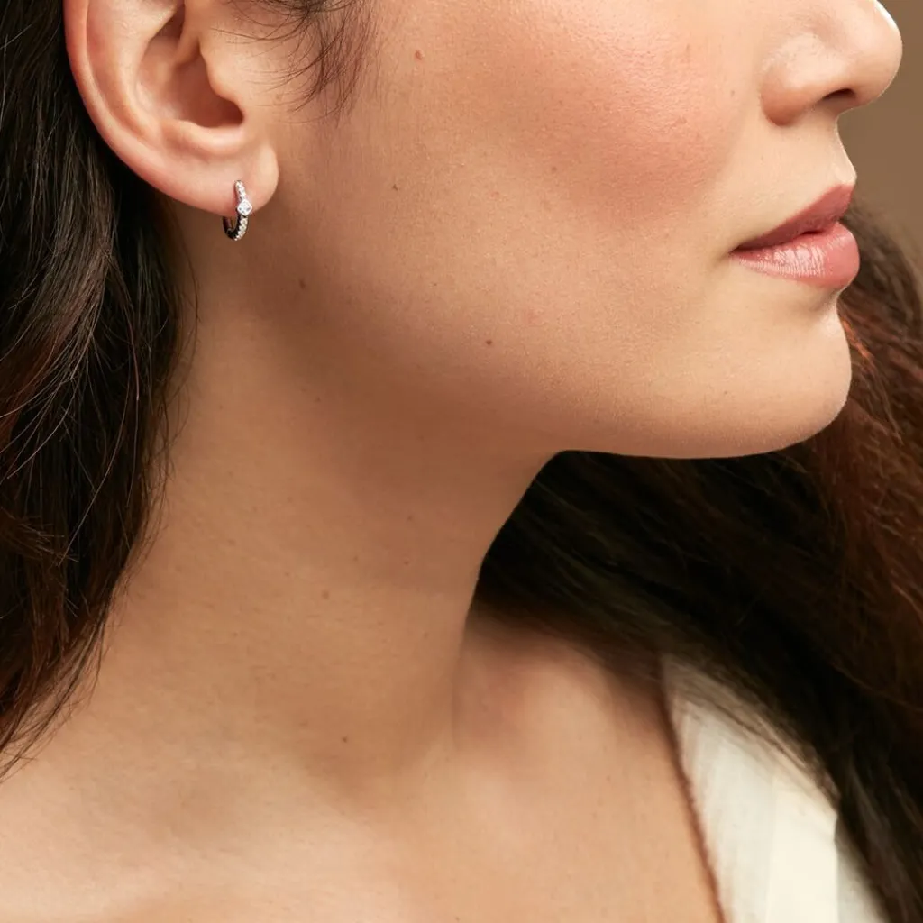 Créoles Argent Rhodié Oxyde De Zirconium Diamètre 12mm
