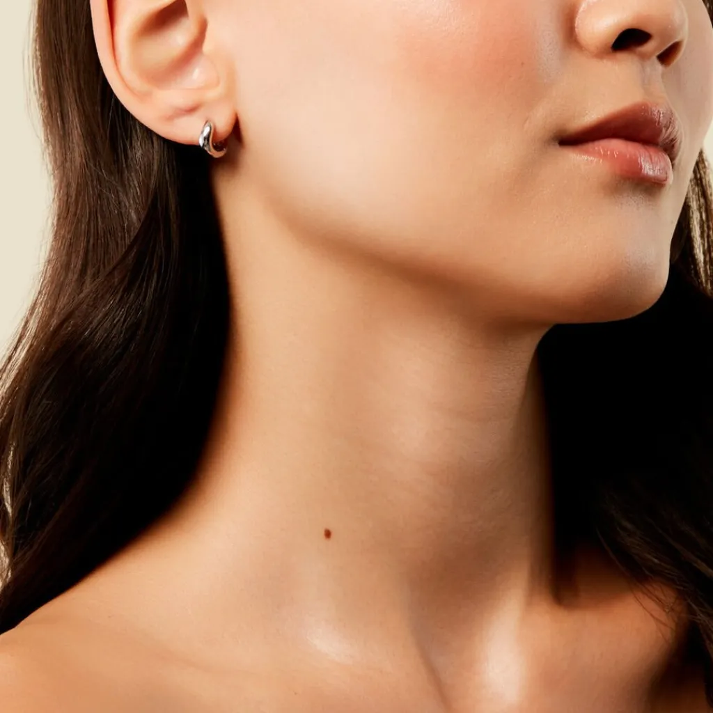 Creoles Argent Blanc 925/1000 Effet Ondule Diametre 8Mm