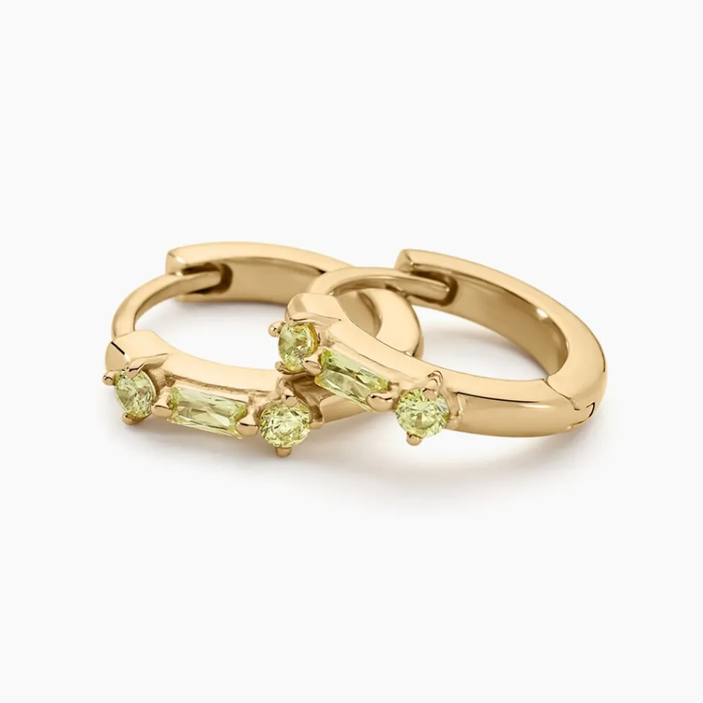 Créoles Plaqué Or Jaune Oxydes De Zirconium Verts Rectangles Accompagnés Diamètre 9mm