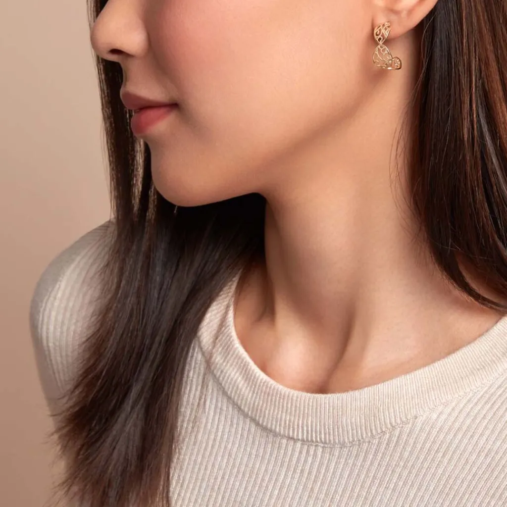 Demi Creoles Or Jaune 375/1000 Filigrane Largeur 8mm Diametre 18mm