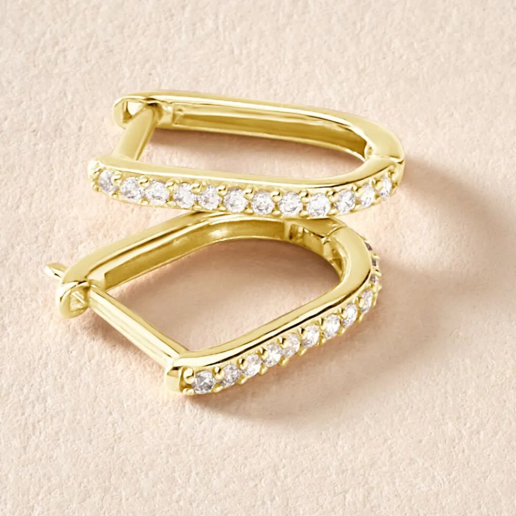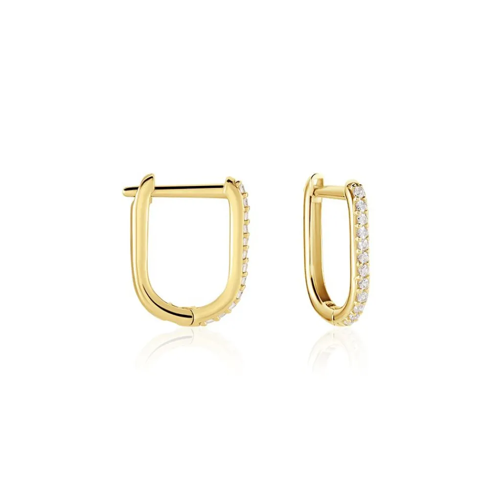 Créoles Rectangulaires Or Jaune 375/1000 Oxydes De Zirconium Serti 4 Griffes