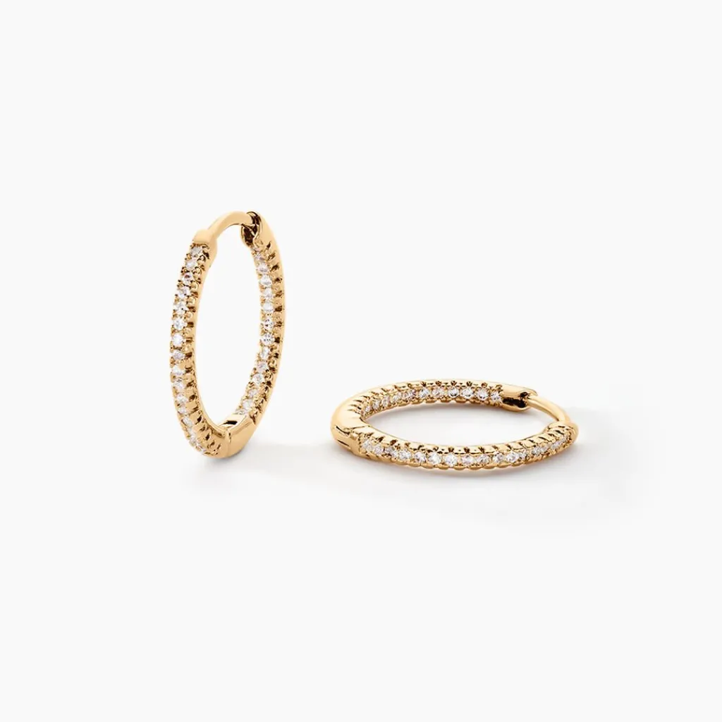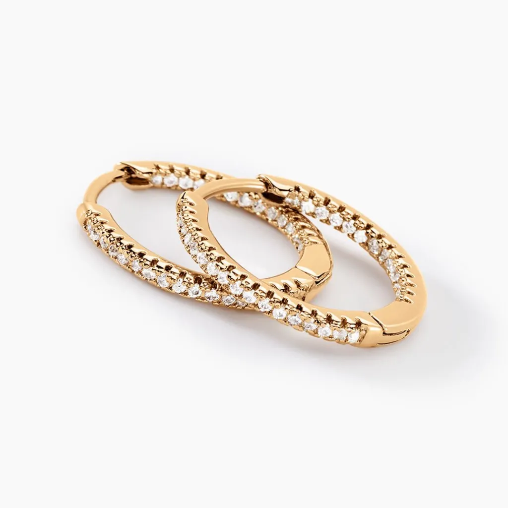Creoles Plaqué Or Jaune Pavage Oxydes De Zirconium Exterieur Et Interieur Diametre 18.5mm