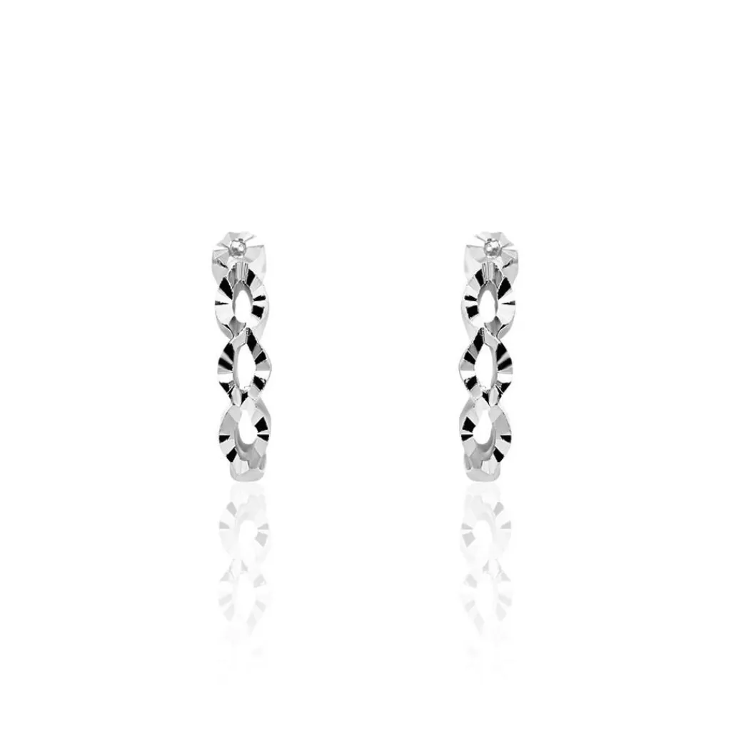 Demi Creoles Argent Blanc 925/1000 Vagues Entrelacees Effets Diamantes